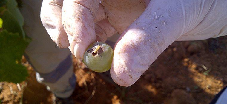 I fori di penetrazione provocati dall’attività trofica delle larve, tra la fase di pre-maturazione e la pre-raccolta, provocano perdita di peso e, predisporre il grappolo ad infezione di botrite e marciume acido.