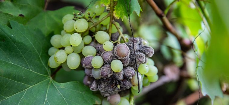 Botrytis cinerea è un fungo polifago in grado di provocare una significativa perdita di resa e qualità in vigneto. L’attività patogenetica del patogeno è dovuta alla sua capacità di sintetizzare enzimi litici responsabili della degradazione della pectina. La botrite è in grado di infettare tutti gli organi della pianta, in particolare sul grappolo, nel periodo che va dall’invaiatura alla vendemmia: gli acini cominciano a virare colore, perdono la consistenza e si ricoprono di una muffa grigia.